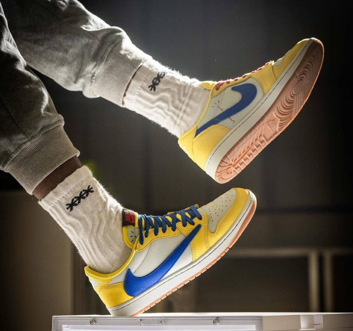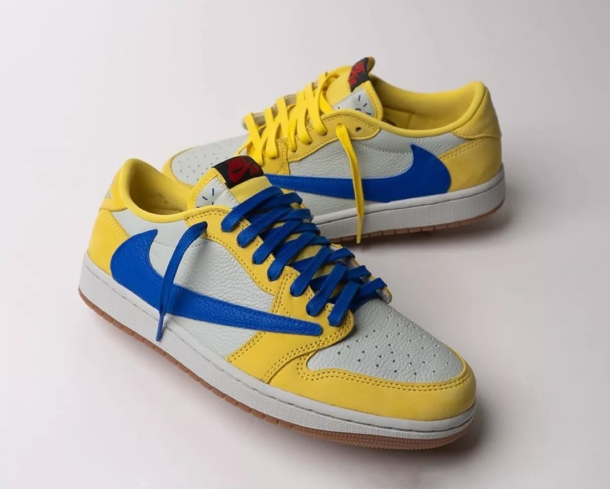 そして今回、“Medium Olive”に続くウィメンズモデルベースの新作として、カナリーイエローのカラーリングを纏った一足がリーク。ライトシルバーのレザーアッパーにカナリーイエローのスウェードオーバーレイを組み合わせ、外側サイドにはレーサーブルーの逆スウッシュロゴを配置。シューズ内側にはレッドカラーで“Cactus Jack”のロゴ、ヒールにはお馴染みのスマイリーフェイスとウィングロゴがあしらわれた。なお、このカラーリングの組み合わせは、トラヴィスの母校である『Elkins High School(エルキンズ高校)』のスクールカラーからインスパイアされている。